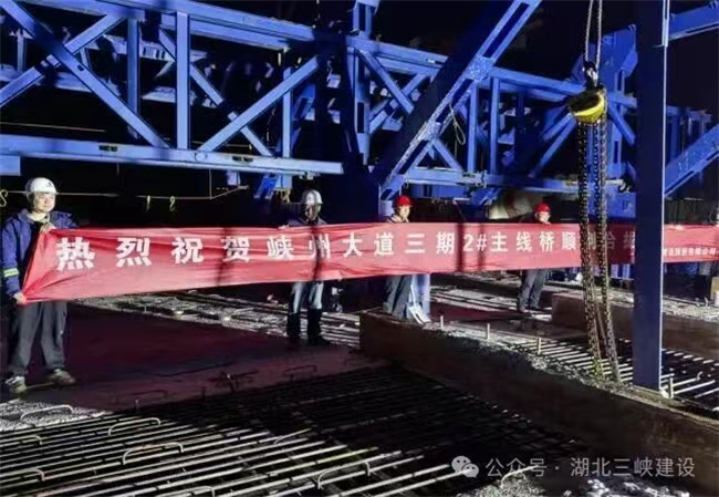 峽州大道三期市政工程2號主線橋左幅主跨懸臂箱梁順利合龍
